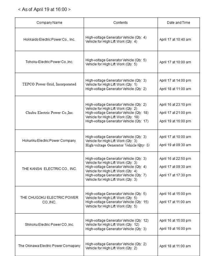Power Company dispatches generator vehicles, etc to KYUSHU ELECTRIC POWER CO., INC.