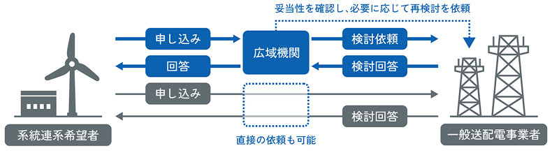 また、発電設備等の系統連系希望者からの系統アクセスに関する申し込みを受け付け、一般送配電事業者が実施した検討結果の検証等の業務を行います。