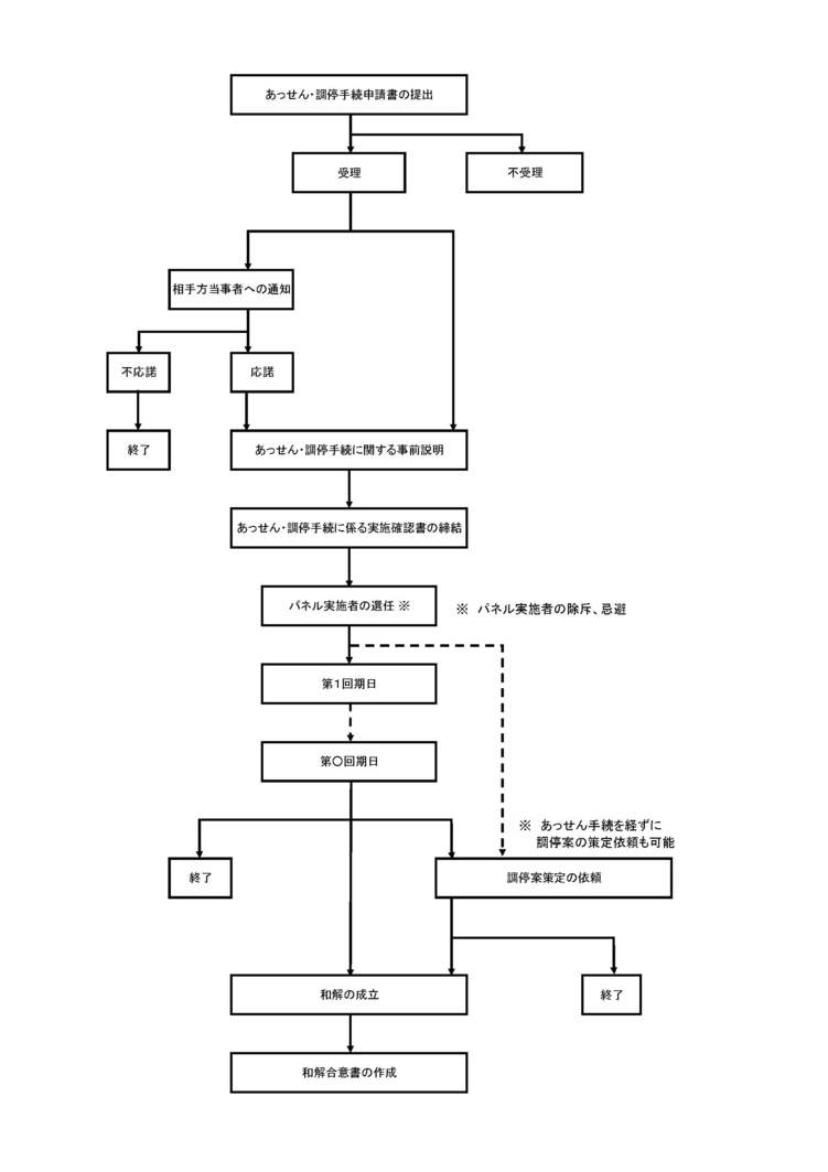 あっせん手続では必ずしも和解案の提示は行われず、あくまで当事者間の歩み寄りを尊重する手続です。その中で、当事者が紛争解決パネルによる調停案の作成を必要とするときに、調停手続となります。