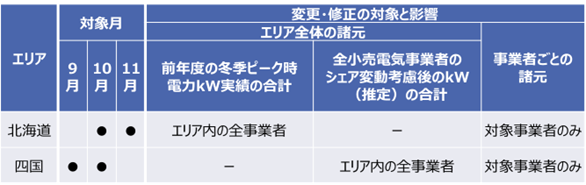 • 再算定の対象エリアおよび対象月について、以下の算定諸元を公表します。