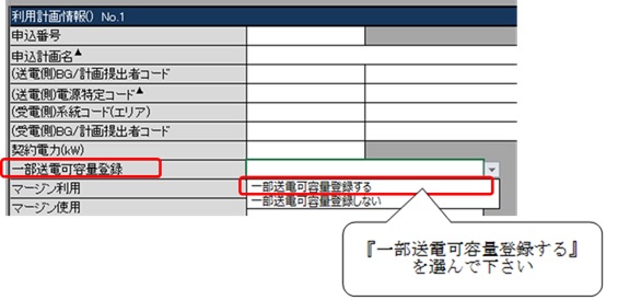 注2)送電不可または一部送電可の場合、下記別紙参照の上、需要調達計画と発電販売計画を容量登録された値